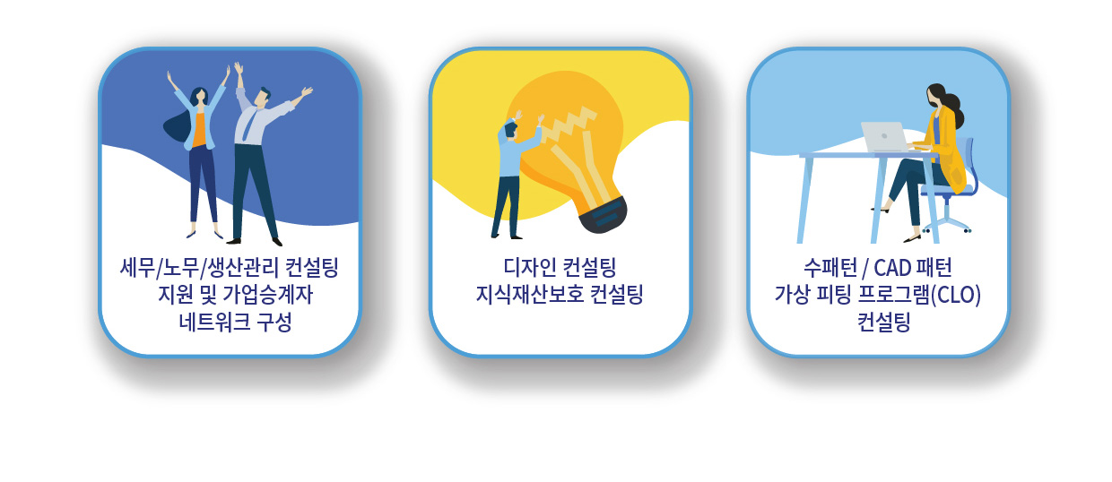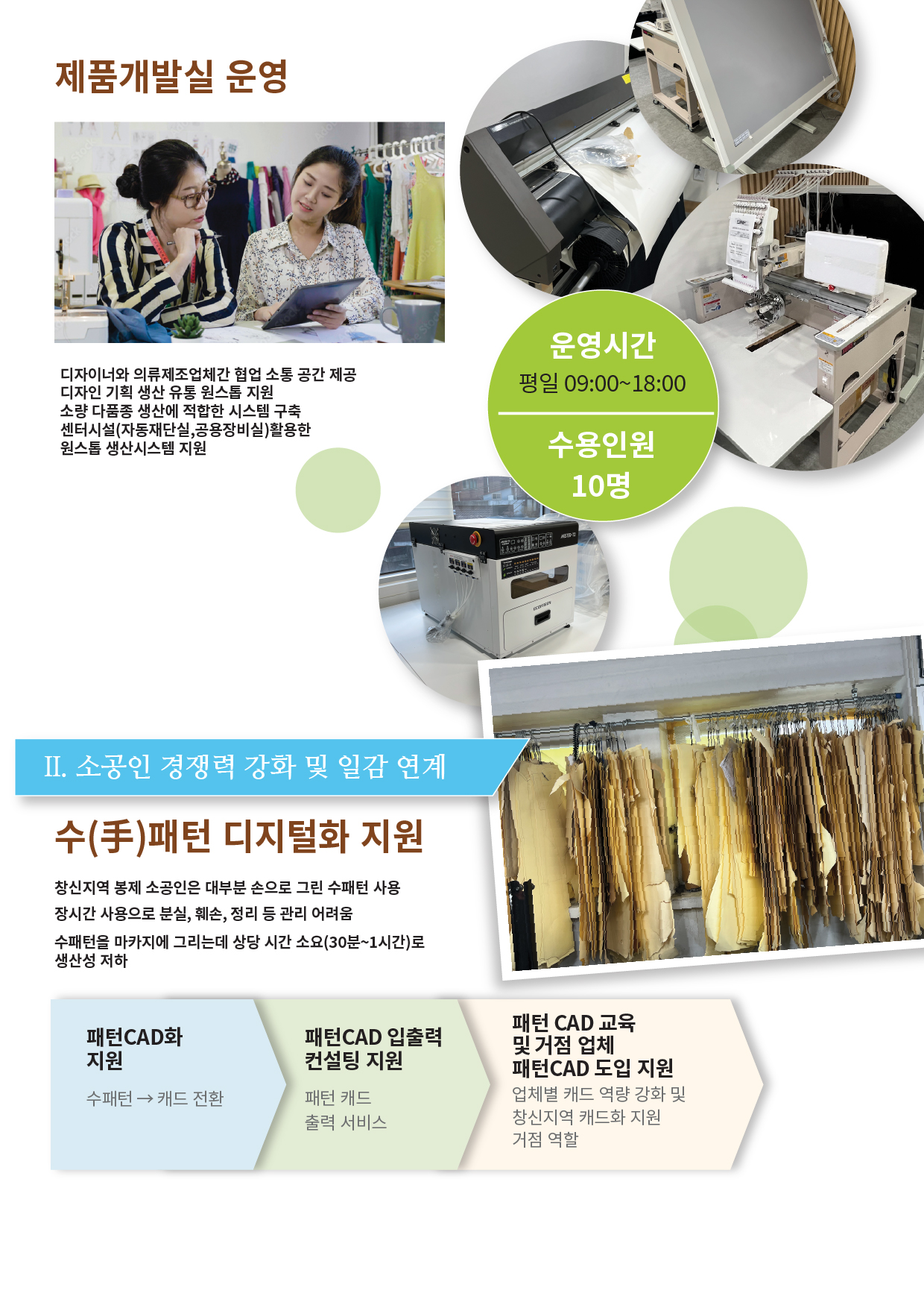수패턴 디지털화 지원, 재직자 대상 패턴 특강/컨설팅, 의류제조업체 DB구축 및 Mappping 사업