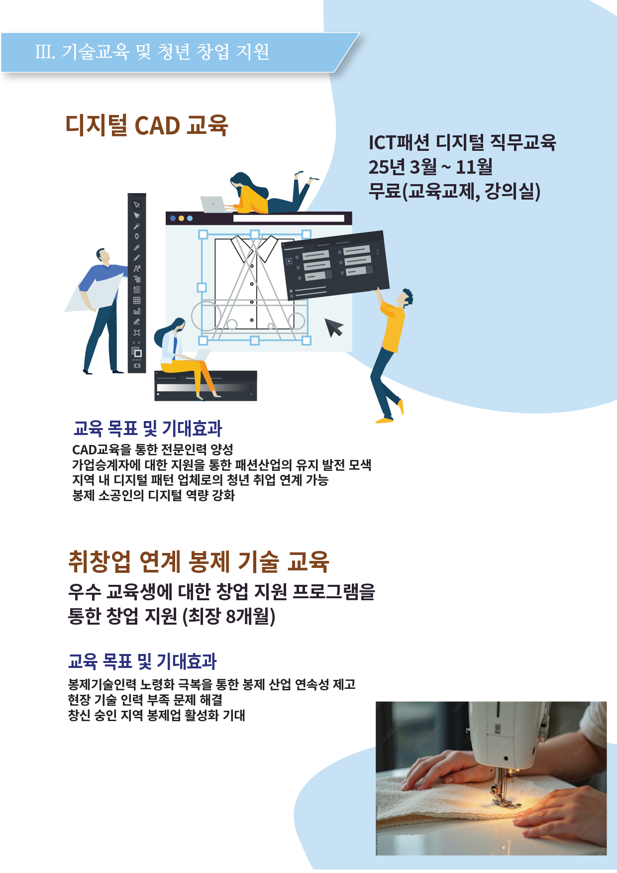 디지털 CAD 교육, 취창업 연계 봉제 기술 교육